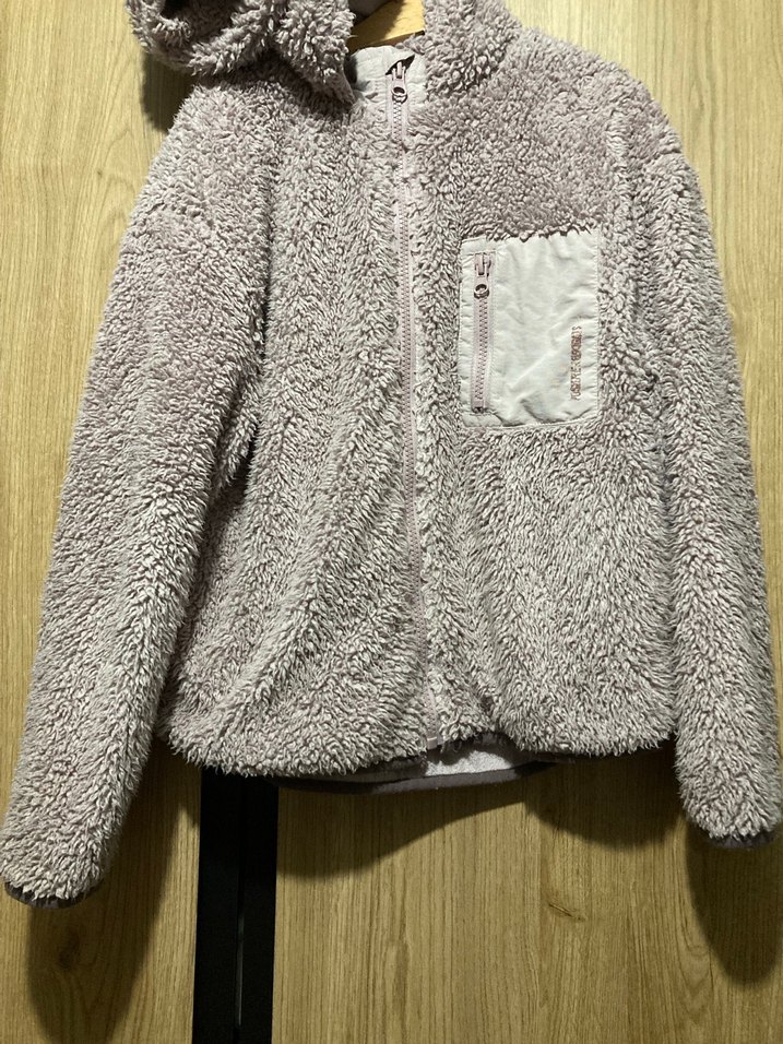 uzun kollu, kapüşonlu, yumuşak ve sıcak dokulu peluş ceket. Önden fermuarlı ve küçük göğüs cebi bulunur, rahat sokak stili için uygun.