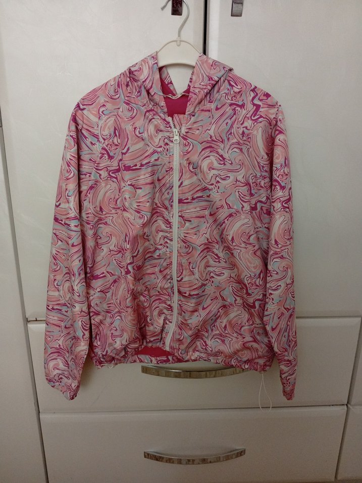 Uzun kollu, kapüşonlu ve fermuarlı bu pembe batik desenli cocuk yagmurluk, rahat ve salaş kesimiyle günlük kullanıma uygundur.