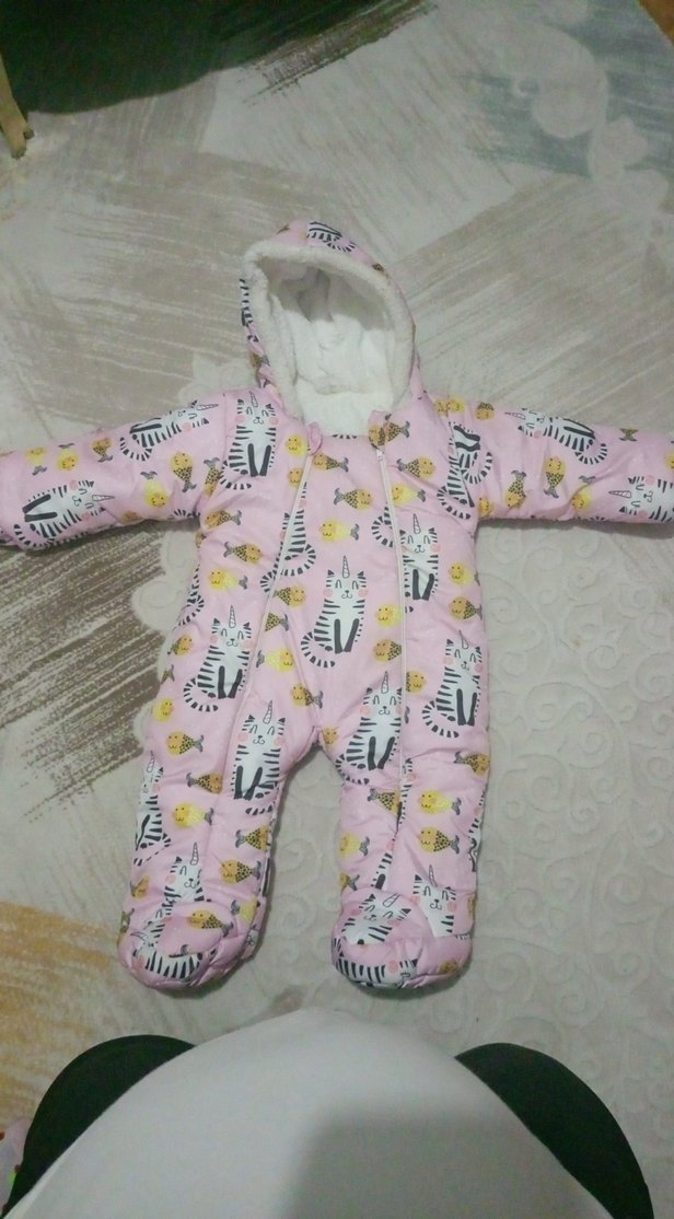 Pastel pembe renkli kız bebek tulumu, kapüşonunda kürk detaylı ve desenli, sıcak tutar ve rahatlık sağlar. ❄️
