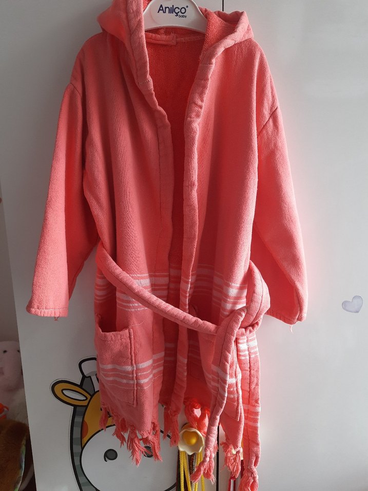 Kapüşonlu Pembe Kız Çocuk Bornozu 3 yaş