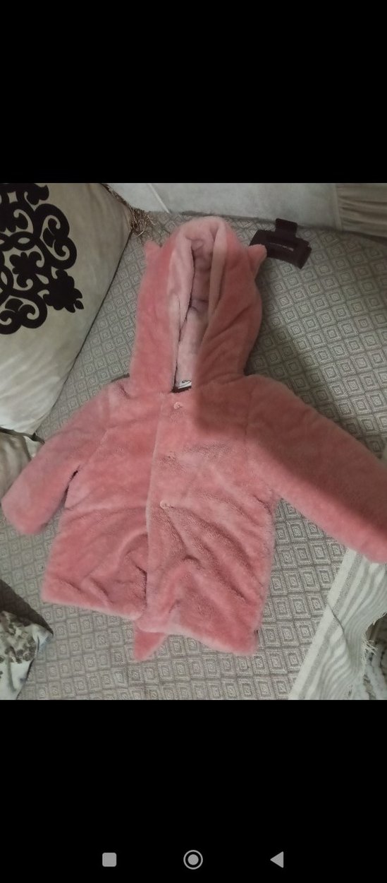#kapşonlu Pembe Kız Çocuk Kürk Kaban#