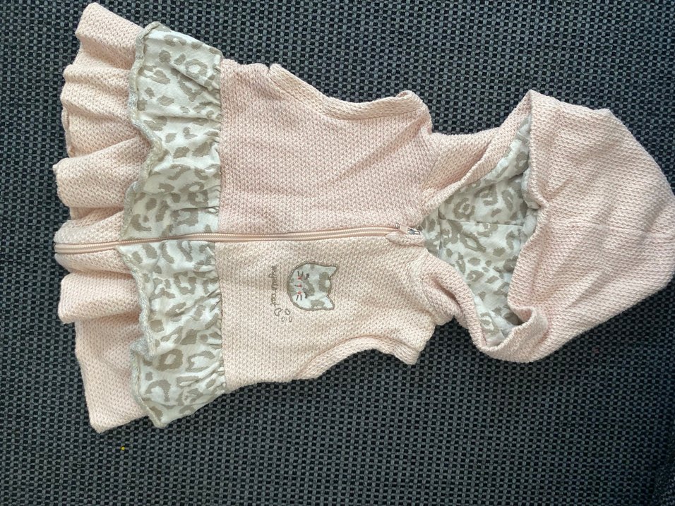 Kapüşonlu, fit kesim, pembe triko kız çocuk yeleği, yılan desenli ve sokak stilini yansıtan tasarıma sahiptir.