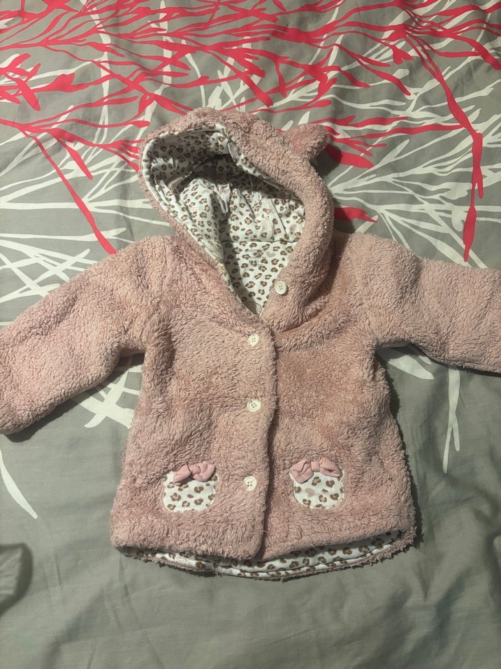 Kapüşonlu, kürklü detaylara sahip pembe kız çocuk montu, işlemeli ve yumuşak iç astarlı