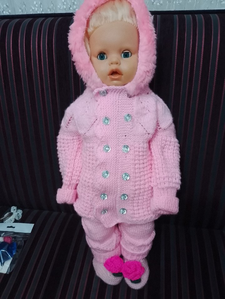 Pembe renkli, kapüşonlu örgü bebek TAKİMİ Önü düğmeli ve ponponlu patiklerle tamamlanmış, yumuşak ve sıcak dokulu bir parçadır. ❄️EL EMEĞİ GÖZ NURU