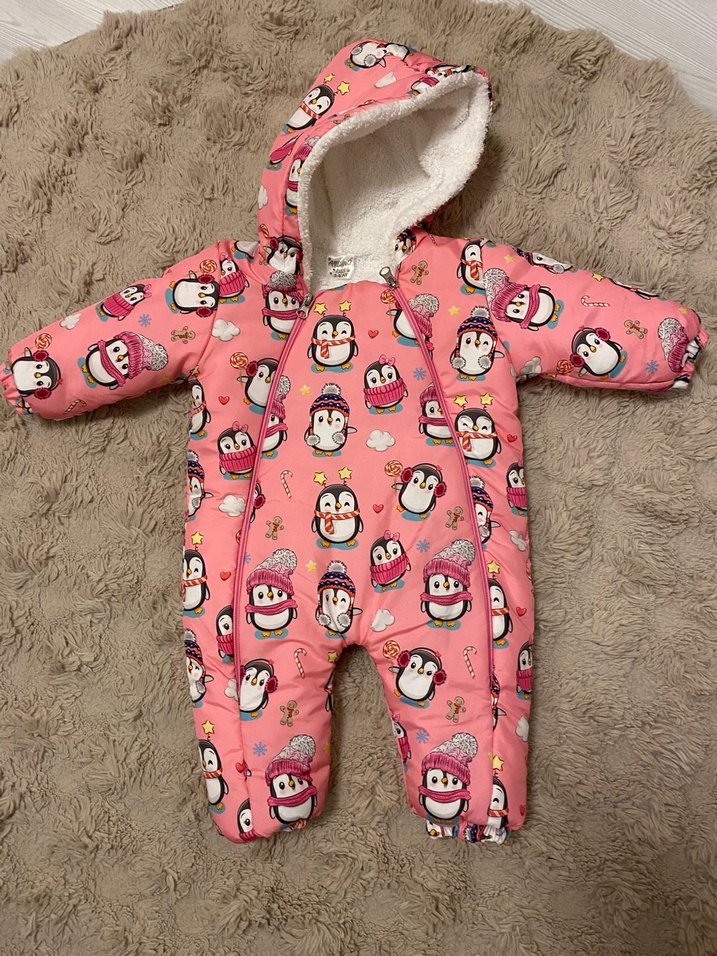 Kapüşonlu, Penguen Desenli Pembe Bebek Tulumu