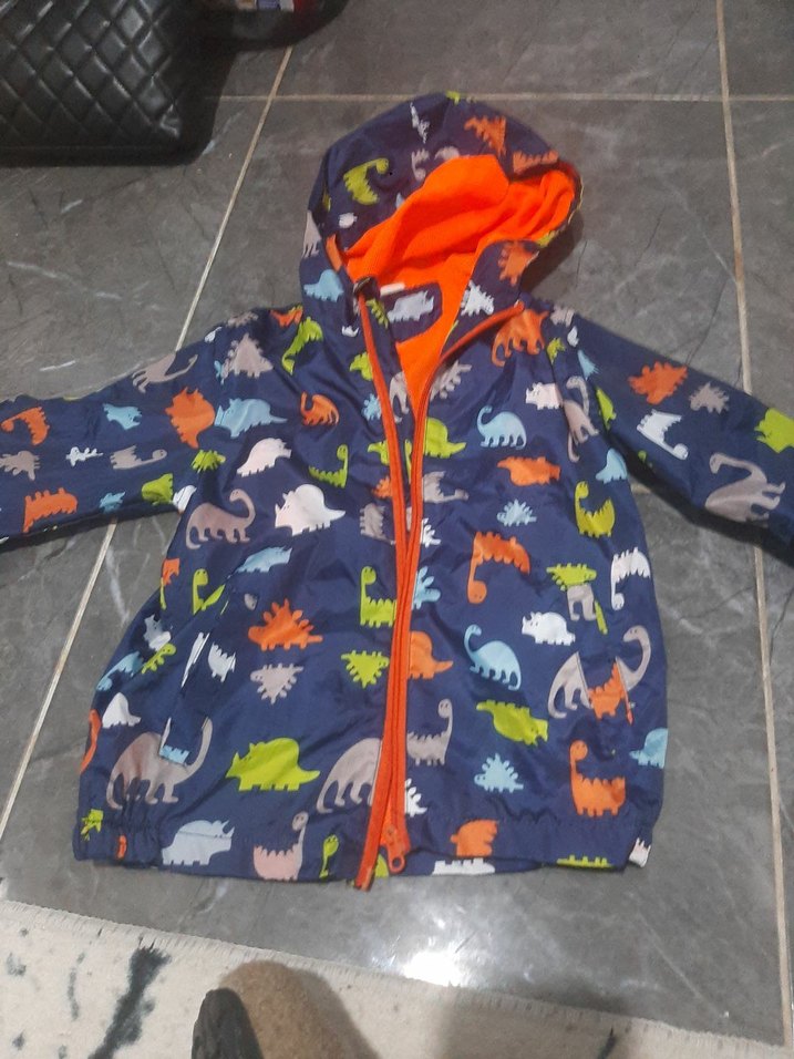 Kapüşonlu, renkli dinozor baskılı erkek çocuk yağmurluğu, fermuarlı ve yumuşak polar kumaştan, rahat kesimlidir.
