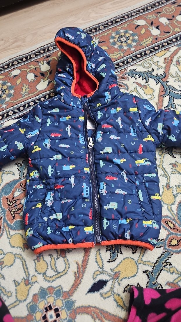 Kapüşonlu ve fermuarlı, renkli desenli, erkek çocuklara uygun, yumuşak ve sıcak kumaştan yapılmış, dar kesim sokak stili mont