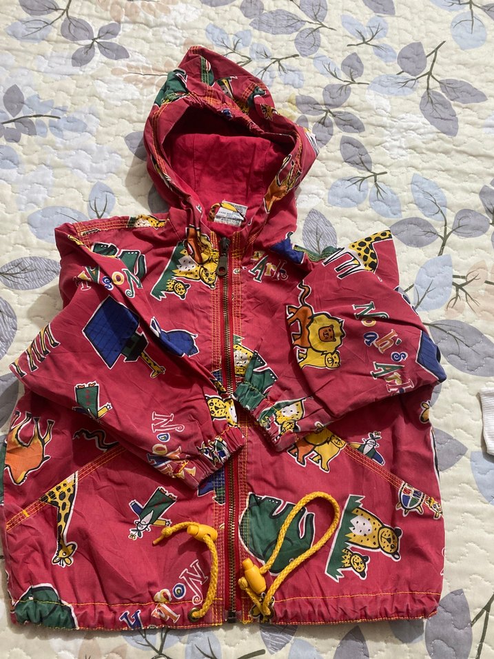 Kapüşonlu, fermuarlı ve bol kesim renkli erkek çocuk yağmurluğu. Yumuşak kumaştan, desenli ve sokak tarzına uygun.