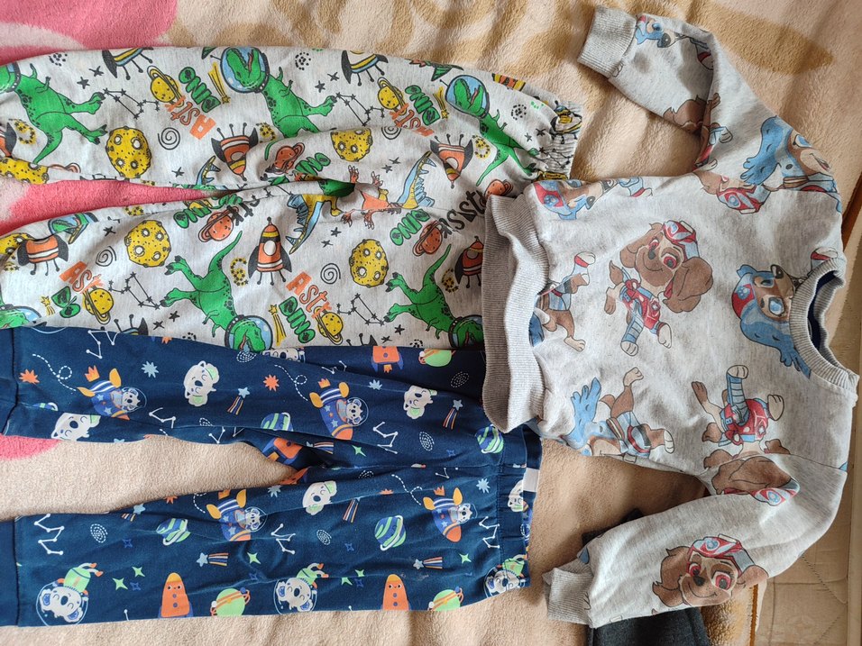 Erkek çocuk pijama takımı, uzun kollu, kapüşonlu ve bol kesimdir. Renkli desenlere sahip ve rahat, örme dokuludur.
