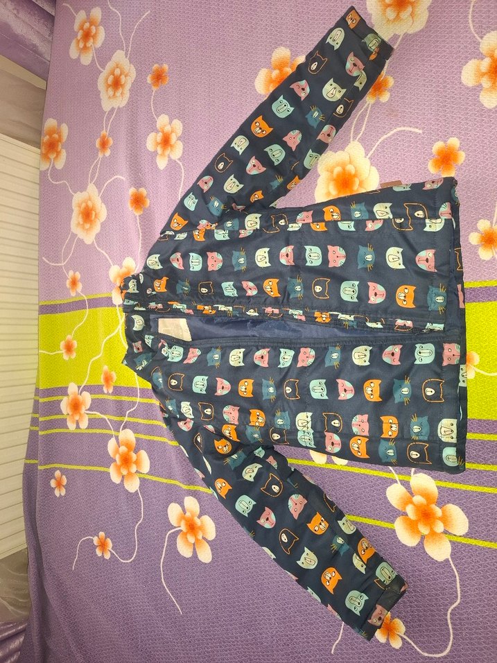 Kapüşonlu, düğmeli ve bol kesim bu renkli kız yağmurluğunda eğlenceli baskılı desenler bulunur. Sokak stiline uygun rahat bir modeldir.