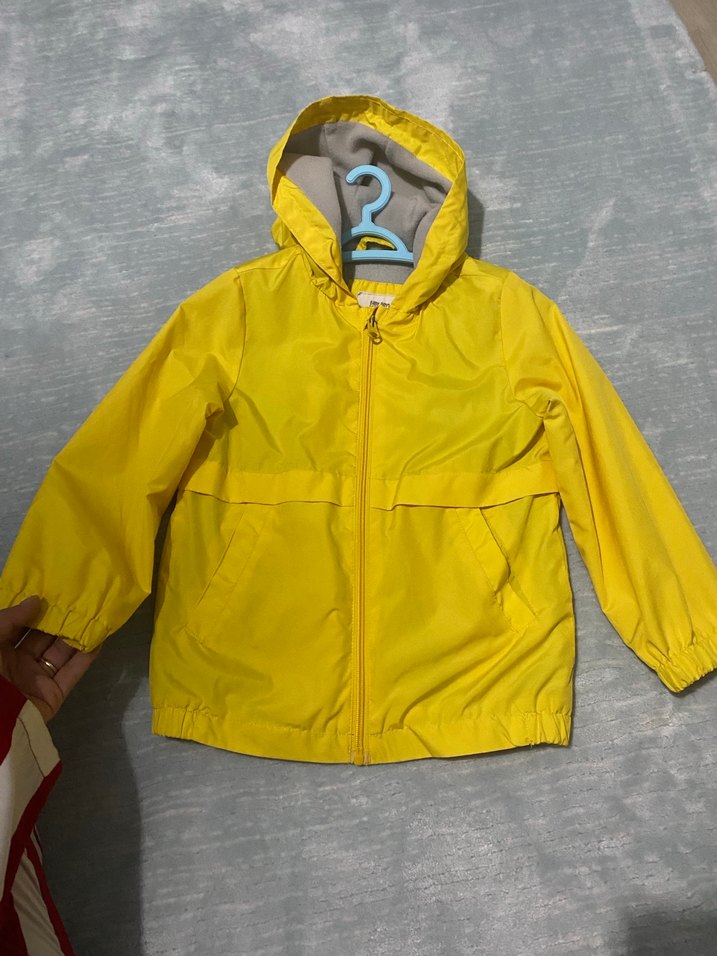 Kapüşonlu, fermuarlı, bol kesim sarı erkek çocuk yağmurluğu. Yumuşak ve sıcak kumaştan, rahat sokak stili için uygun. ️