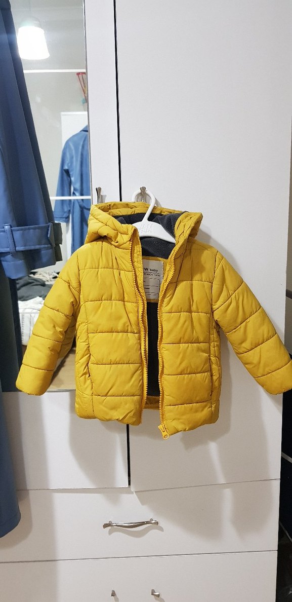 Kapüşonlu ve fermuarlı, yumuşak ve sıcak dokulu hafif sarı renkli, trend sokak tarzı için uygun erkek çocuk montu.
