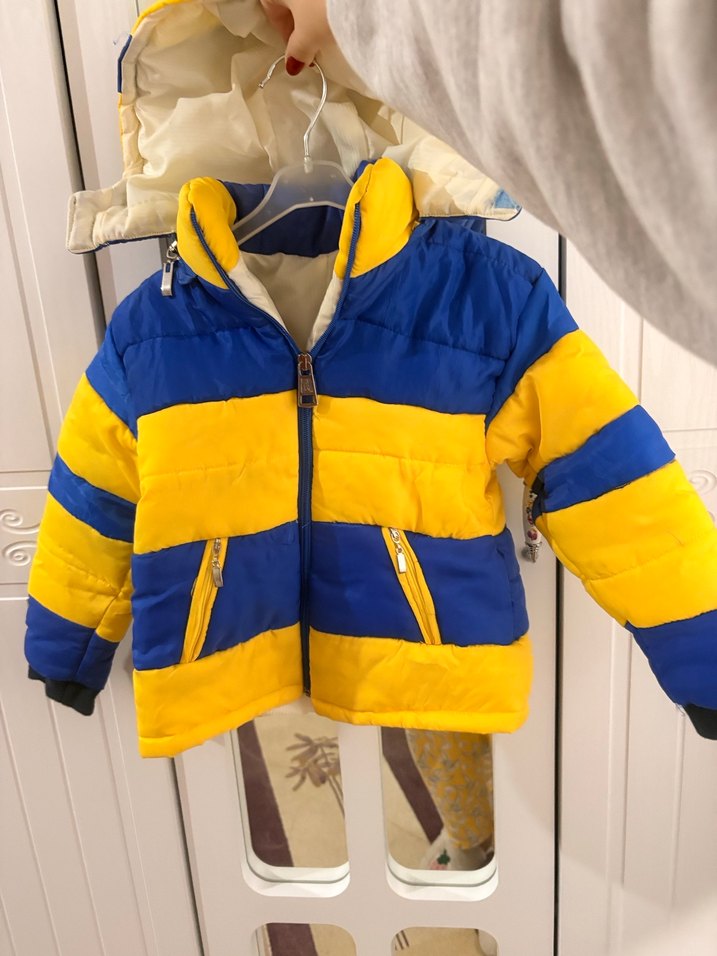 Kapüşonlu Sarı-Mavi Erkek Çocuk Mont