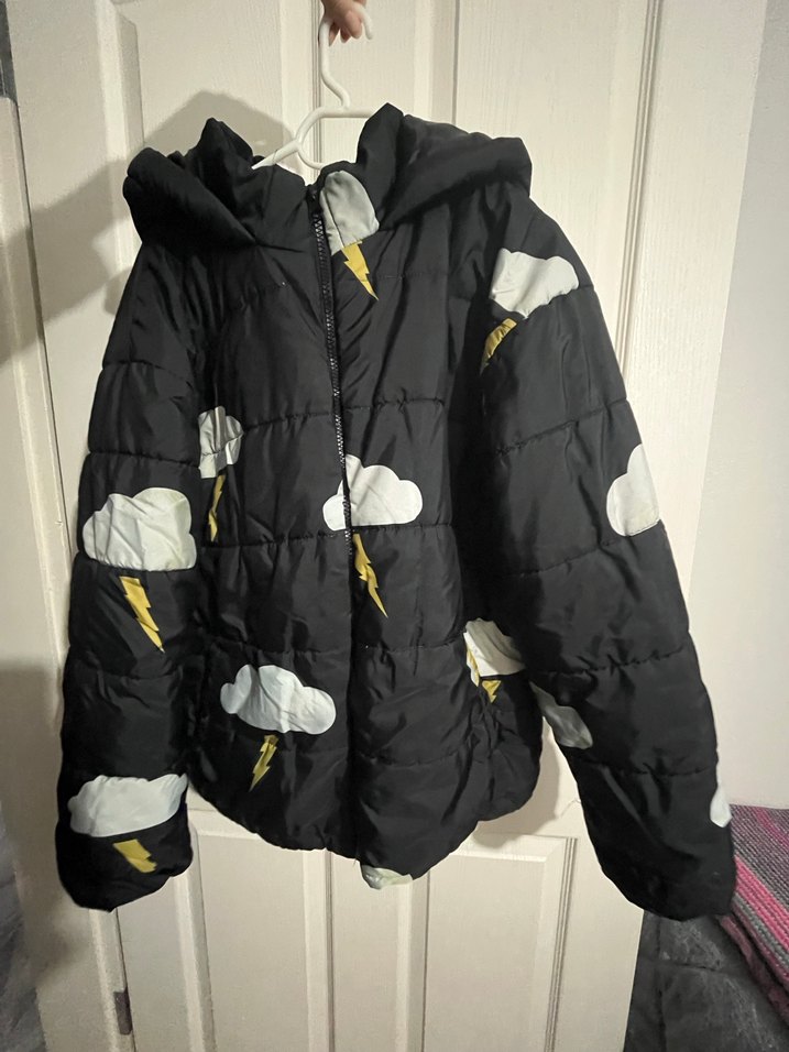 Kapüşonlu, uzun kollu ve bol kesim şişme mont. Yumuşak kumaştan, dış mekan kullanımı için rahat ve sıcak tutar. ☁️ bazı bulutlarda sararıklılık var fotoğrafa eklediğim gibi
