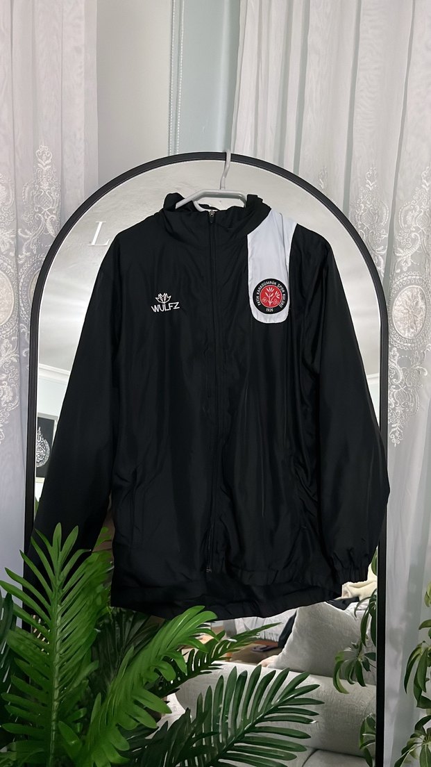 Kapüşonlu, uzun kollu, fermuarlı siyah baskılı spor mont. Rahat kesim, yumuşak ve sıcak kumaştan, günlük kullanım için uygun. ️