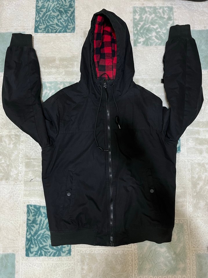 Ürün orijinaldir M bedendir işaretleyemedim Kapüşonlu, fermuarlı siyah erkek çocuk ceketi, içi kırmızı kareli yumuşak kumaşla astarlanmıştır. Sıkı kesim, sokak stili için uygun.