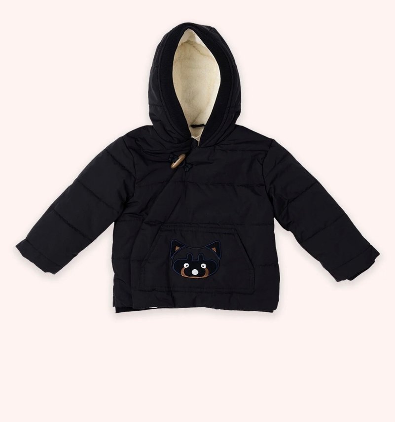 Kapüşonlu, siyah ve dar kesim erkek çocuk montu, nakışlı detaylar ve kürk süslemelere sahiptir. Yumuşak ve sıcak kumaştan üretilmiştir. Çocuğuma küçük geldi sadece 2-3 kez giyebildi çok temiz bedeni 6-12 ay