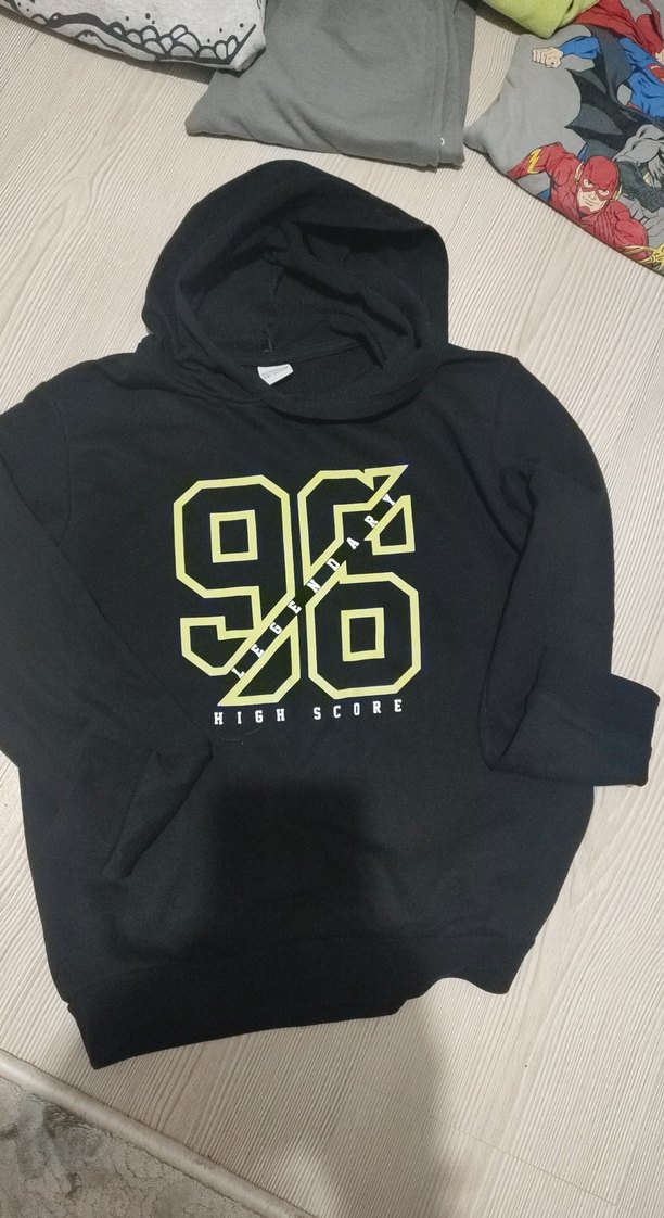Hepsinin fiyatıdır.6-7 yaş için uygundur.Kapüşonlu, uzun kollu, bol kesim siyah erkek çocuk sweatshirtü. Önünde fermuarlı ve göğsünde "96" baskısı bulunur. Yumuşak ve sıcak kumaştan yapılmıştır.
