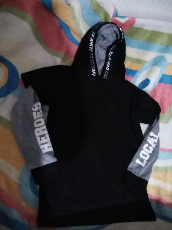 Siyah renkli, kapüşonlu sweatshirtü, kolarda 'HEROES' ve 'LOCAL' baskılı gri panellerle uzun kolludur. Yumuşak ve rahat fleece kumaştan yapılmıştır, gevşek kesim ve cırt cırt detayları bulunur.