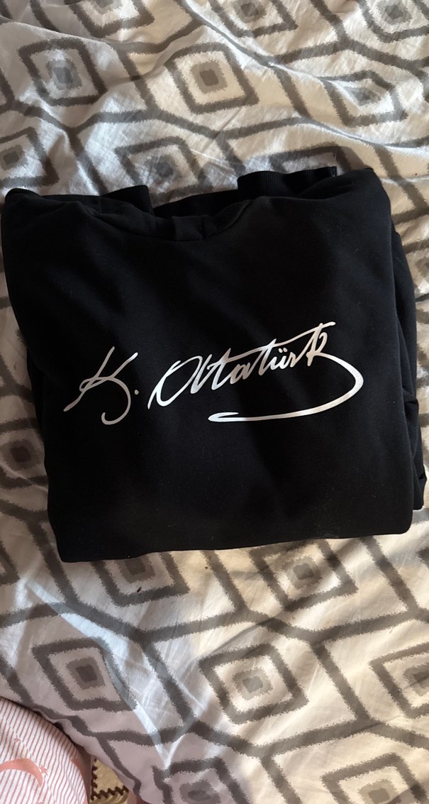 Kapüşonlu Siyah K. Atatürk Baskılı sweat