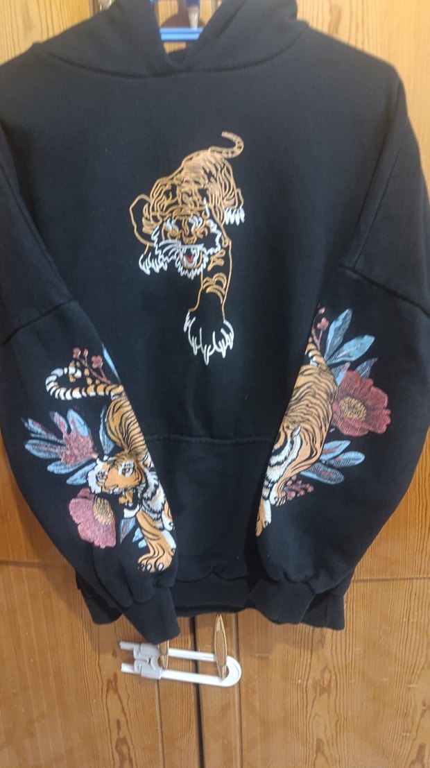Kapüşonlu Siyah Kaplan Baskılı Kadın Sweatshirt