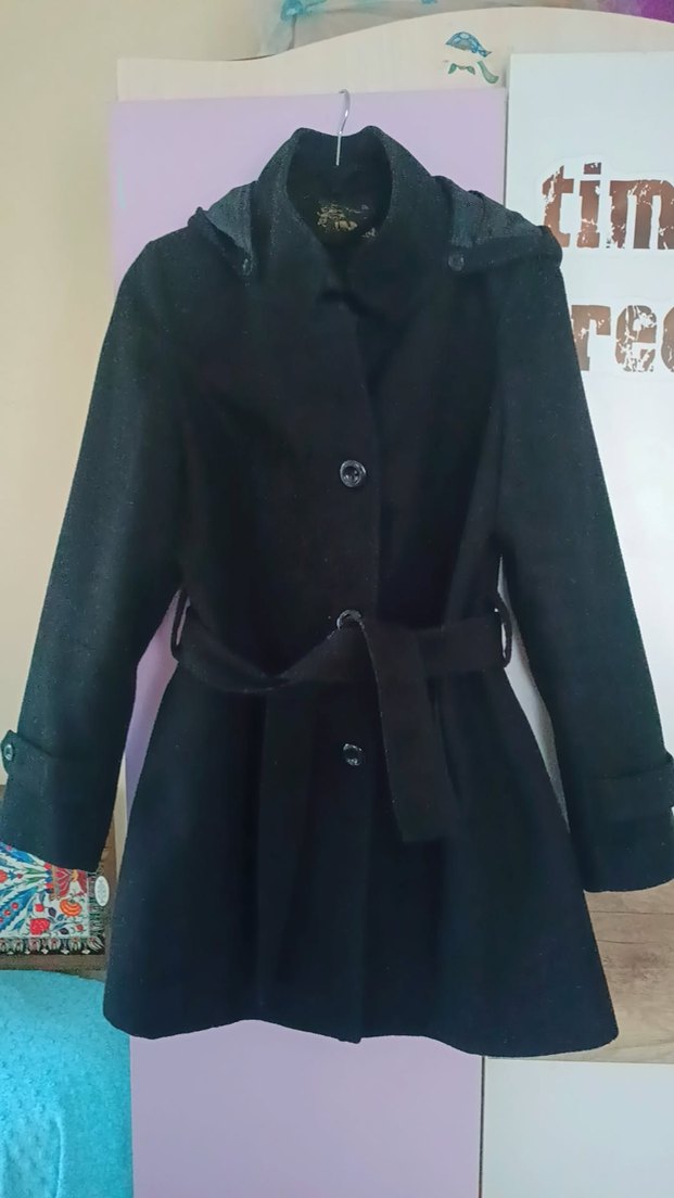 Kapüşonlu iç astarlı ve kemerli siyah kaban, klasik ve sıcak bir dış giyim seçeneği sunar. Uzun kollu ve yapılandırılmış bir kesime sahiptir. 38 beden yaziyor ama bence 36 bedene daha uygun. B.R.K