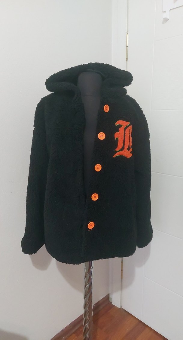 Düğmeli, uzun kollu siyah midi boy KAPÜŞONLU baskılı detaylarla rahat ve şık bir görünüm sunar. İÇİ ASTARLİDİR YANLARINDA CEP BULUNUR ÖLÇÜLERİ İKİ KOL ARASI 57 CM BOY 66 CM