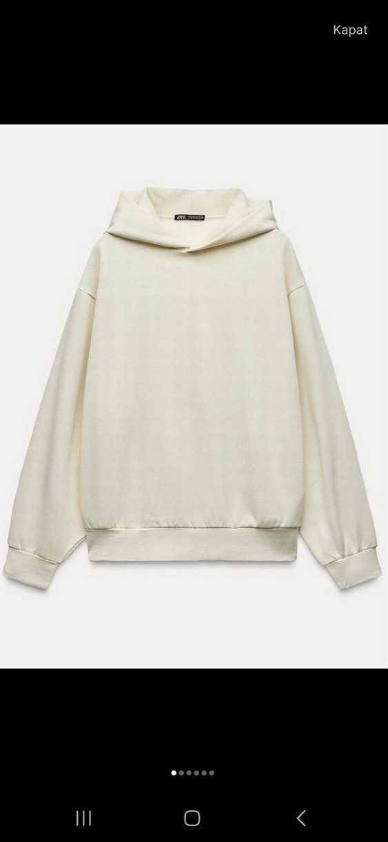 Beyaz kapüşonlu sweatshirt, uzun kollu ve bol kesimdir. Yumuşak ve sıcak kumaştan, sade ve desensiz tasarıma sahiptir. Günlük kullanım için uygundur.