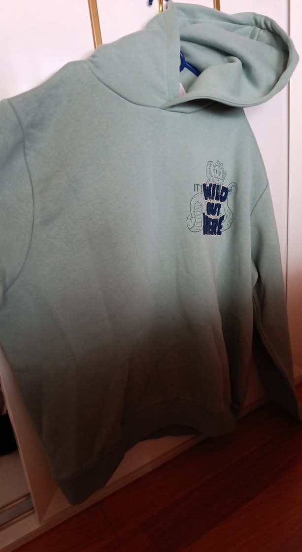 Kapüşonlu, baskılı ve nakış detaylı, bol kesim sweatshirt. Yumuşak ve sıcak kumaştan, sokak stili için uygundur. temiz ve hiç giyilmedi sadece etiketi mevcut değil