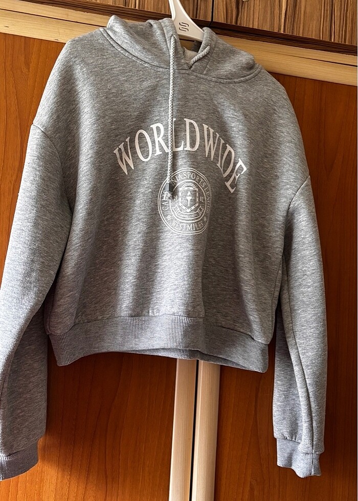 Kısa bir modeldir belde bitiyor. S-m beden uyumludur. Hafif oversize kesimdir. Yumus yumus tatli bir sweatshirt.