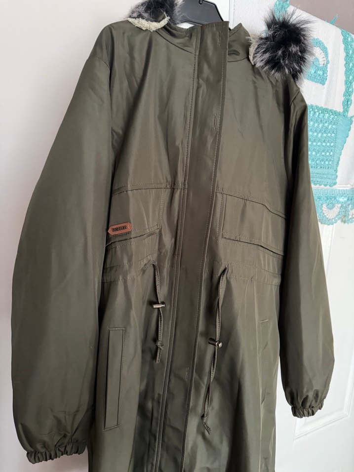 kapüşonlu uzun kadın mont. Fermuarlı önü, kesik yaka ve bol kesimi ile sokak stiline uygun, sıcak tutan kumaştan yapılmıştır.