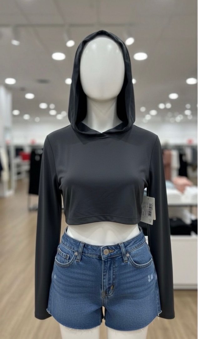 Kapüşonlu Uzun Kollu Crop Sweatshirt. Etiketli hiç giyilmedi