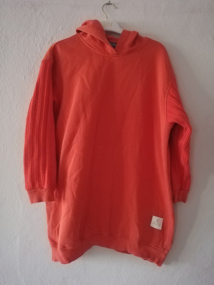 ,turuncu renk kapüşonlu ve örgü detaylı uzun kollu, bol kesim kadın sweatshirtü. Midi boyda, yumuşak ve sıcak kumaştan üretilmiştir, gündelik rahat kullanıma uygundur.