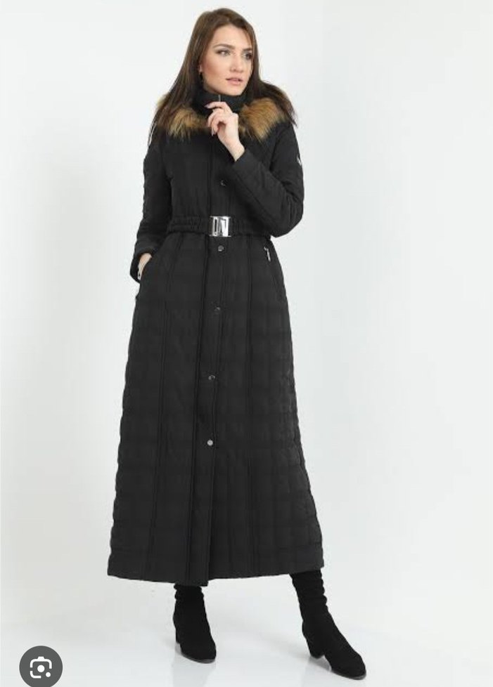 Kapüşonu kürklü uzun mont. Hiçbir kusuru yoktur. 40 beden