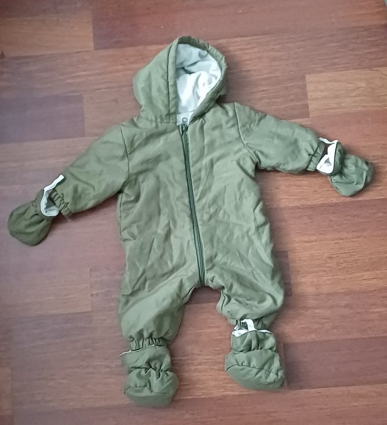 Kapüşonlu ve fermuarlı yeşil bebek tulumu, yumuşak ve sıcak kumaştan üretilmiştir. Tam koruma sağlar, içi polarlı. 2-6 aylık bebekler için uygun.