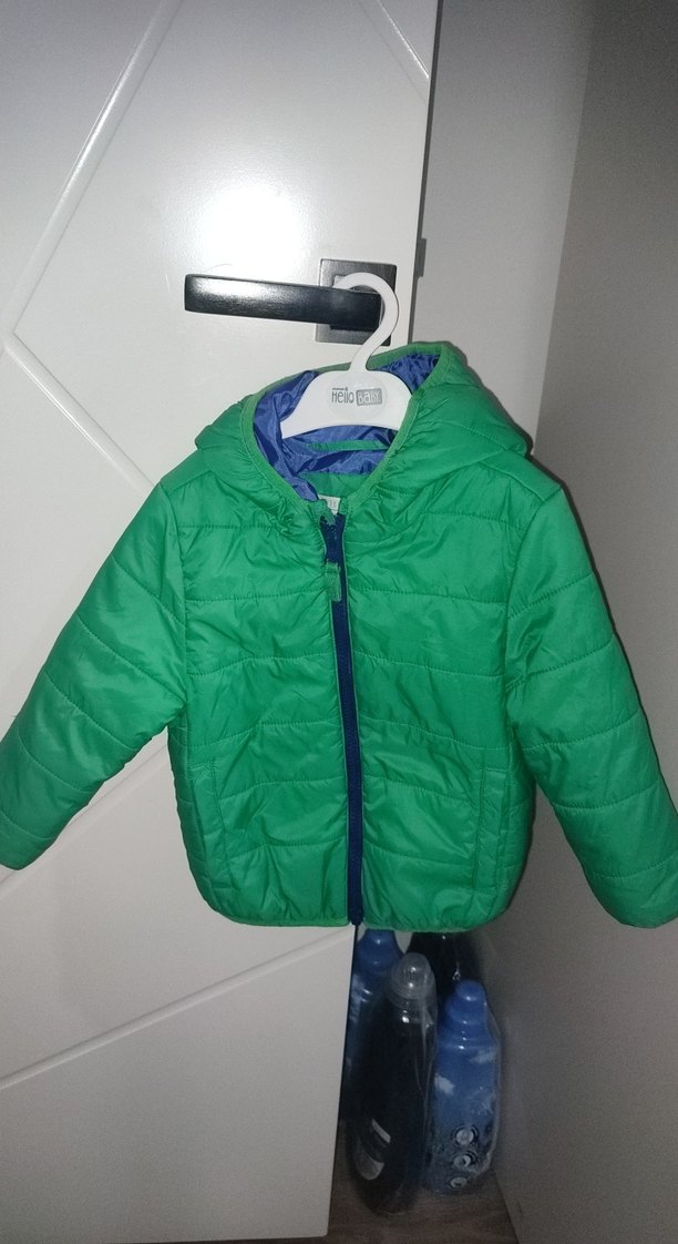 Yeşil renkli, kapüşonlu ve fermuarlı erkek çocuk montu, rahat sokak stili için yumuşak ve sıcak kumaştan üretilmiştir.