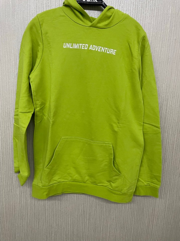 Yeşil #kapüşonlu #sweatshirt, uzun kollu ve rahat kesimdir. Önünde "UNLIMITED ADVENTURE" yazısı ve kanguru cepleri bulunur. Günlük sokak stili için uygundur. Sayfamda böyle ürünler çok