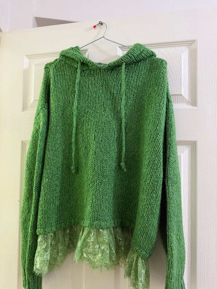 Kapüşonlu Yeşil Triko Kadın Kazak