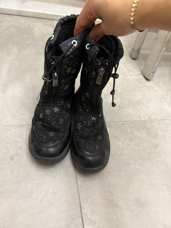 İçi yünlü Siyah cocuk desenlı kar botu dıstan sorunu yok ancak iç tabanında eskime olmus yenı tabanlık ıle değiştirebilirsiniz