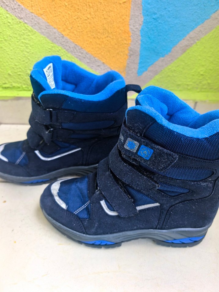 Mavi renkli, polar astarlı, velcro bantlı erkek çocuk botları. Trendy casual sokak stili için uygun, rahat ve renkli tasarım. Kar botu bantlı. 4 defa kara gittik 5 er saat kullanıldı tahmini. Yeni gibi.