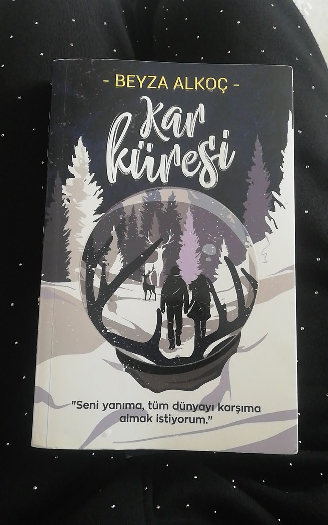 Beyza Alkoç'un Kar Küresi kitabı, kar küresi görseli ve "Seni yanıma, tüm dünyayı karşıma almak istiyorum." alıntısıyla dikkat çekiyor. ❄️