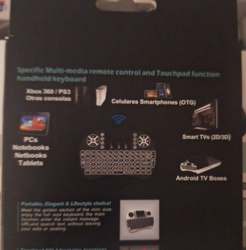 Bu siyah klavye, çoklu ortam uzaktan kumanda ve dokunmatik yüzey işlevlerine sahiptir; OTG destekli akıllı telefonlar, Smart TV'ler ve Android TV kutuları ile uyumludur.