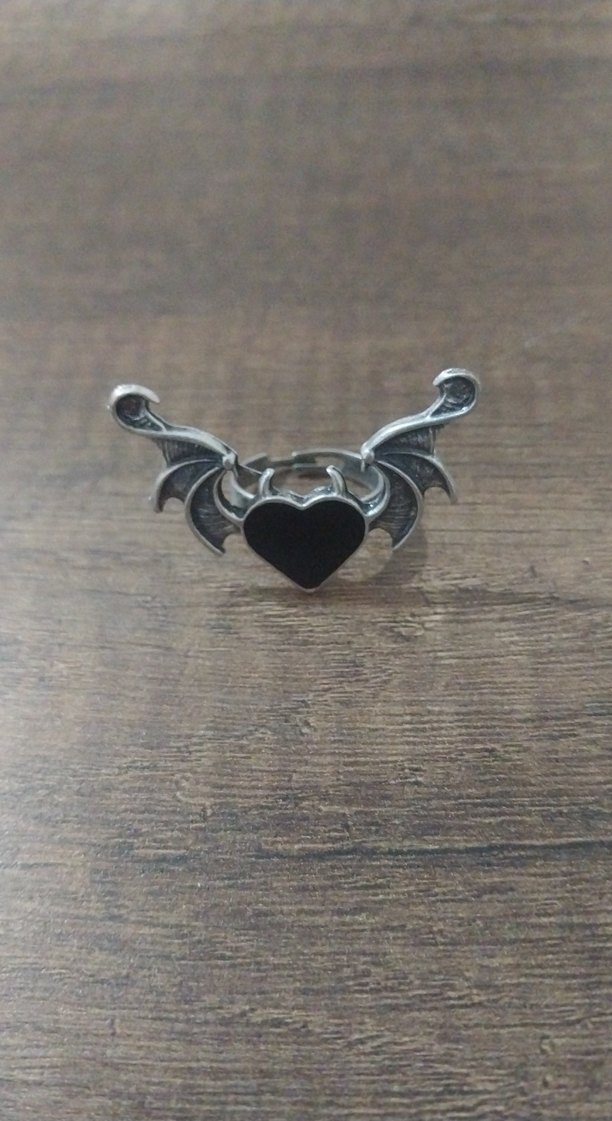 Kara kalpli ve kanatlı, yüzük. Rock punk tarzı ve romantik akşamlar için uygun .