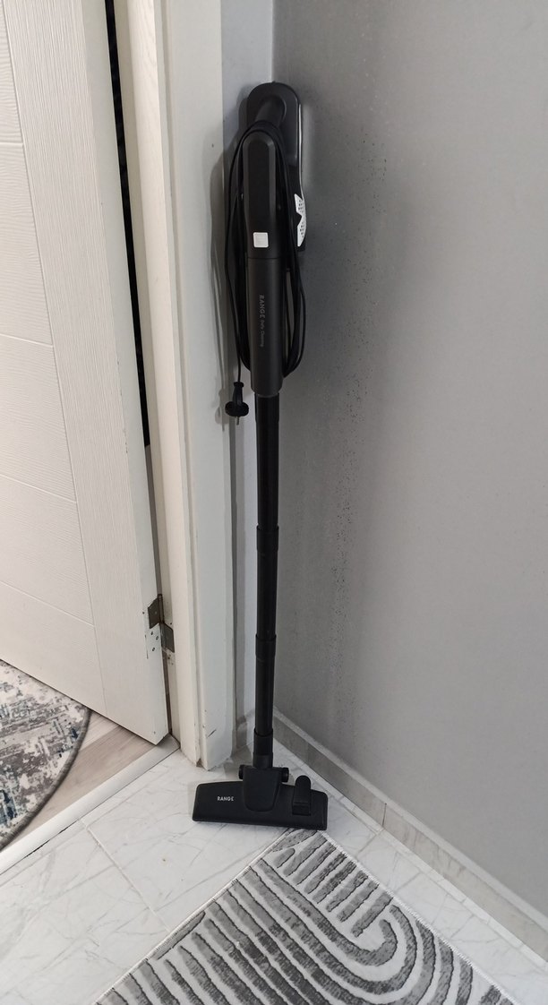 Siyah renkli dik elektrikli süpürge, ince tasarımı ve uzun başlığı ile etkili temizlik sağlar. Farklı zeminlerde kullanıma uygundur ve kolay saklanır.
