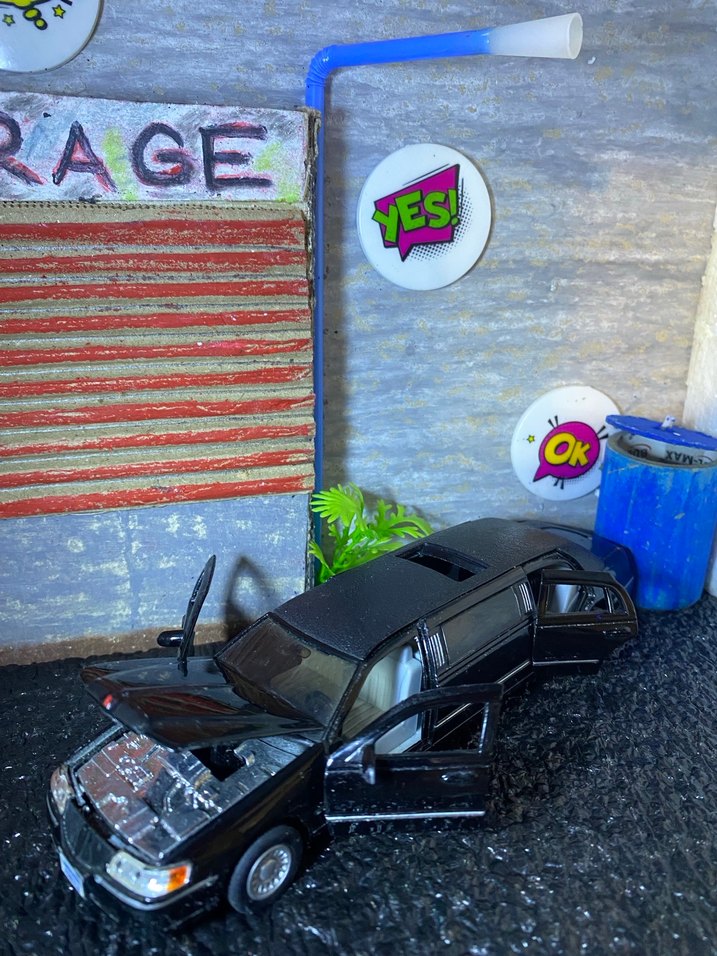 Kapıları ve motor kaputu açılabilen, detaylı tasarıma sahip siyah oyuncak araba. "AGE" ve "yES!" yazılı çıkartmalar içerir.