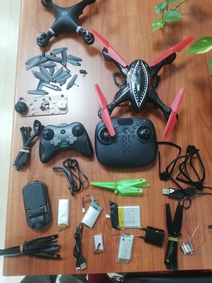 Kara uzaktan kumandalı drone, çok sayıda pervane, kumandalar, piller ve çeşitli aksesuarlarla birlikte gelir. Parça amaçlı