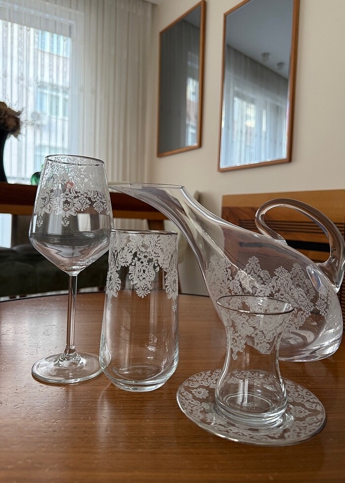 Karaca 12 li su takımı seti yeni gibidir herhangi sıkıntısı yoktur . Tek çay bardakları 11 tanedir. İstemeyn olursa cay bardaklarını cıkarıp satın alabilir