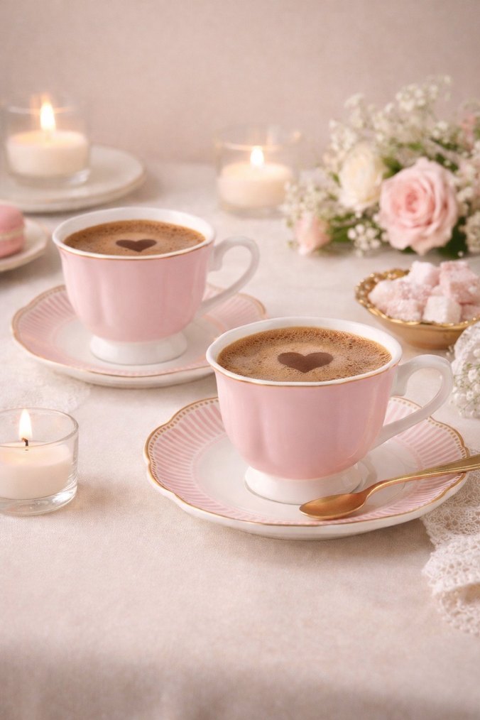 Yeni,2 adet fincan,4 parça✨Pastel pembe seramik kahve fincanları ve tabaklarından oluşan set. Sıcak içecekler için uygundur, şık ve zarif tasarıma sahiptir. ☕