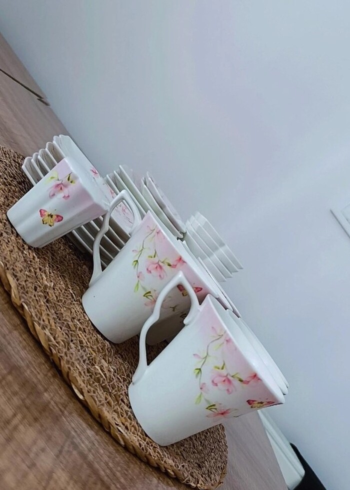 Karaca kahvaltı seti 6 servis 4 reçellik 2 zeytinlik 6 çay fincanı 5 çay fincanı altlığı biri çeyiz dizerken yanlışlıkla atılmış 1 tuzluk çok kullanılmadı