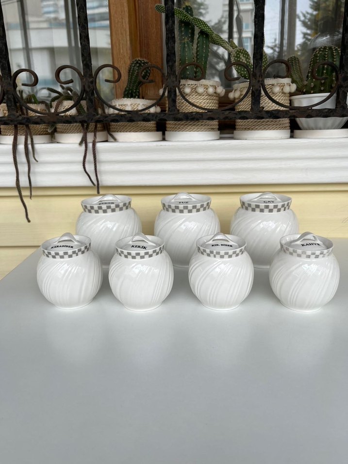 Karaca marka baharat takımı . 3 büyük 4 küçük kavanozdan oluşmaktadır . Düğün için hediye olarak geldi fakat şeker kavanozunun kapağı çatlamış ve yapıştırılmış . Ürün mağazalarında 1500₺ . Şeker kapağından ötürü yarı fiyatına veriyorum . #baharatlık #karaca #karacabaharatlık